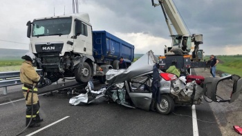 ДТП с участием грузового автомобиля «MAN» и «Ford Fiesta». В результате ДТП три человека получили травмы несовместимые с жизнью. Спасатели при помощи гидравлического аварийно-спасательного инструмента, шанцевого инструмента и электроинструмента деблокировали тела погибших мужчины 1980 г.р., женщины 1979 г.р. а также несовершеннолетнего 2007 г.р.