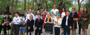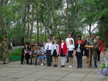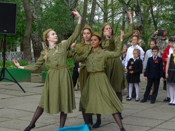Ребята читали стихотворения о войне, Победе, любви к Родине, танцевали, возлагали цветы к памятнику Евгении Рудневой, почтили минутой молчания, всех тех, кто отдал свою жизнь за наше мирное небо над головой. Кульминационным моментом стало исполнение Кати Саввиной песни «День Победы», которую с удовольствием подпевали все участники линейки.