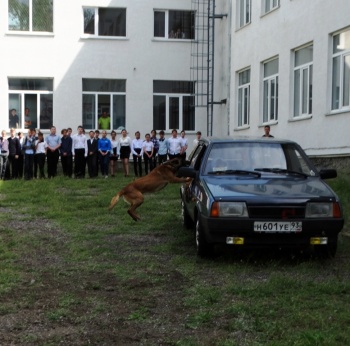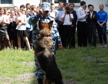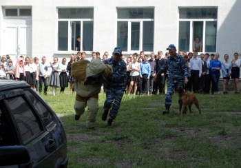 Специально для ребят специалисты кинологической службы с участием «четвероногих полицейских», продемонстрировали дрессировку, а также прохождение полосы препятствий. Один из псов должен был найти «взрывное» устройство, другой - исследовал сумки на наличие в них имитатора наркотических веществ, также служебные собаки показали себя при задержании грабителя и освобождении заложника.