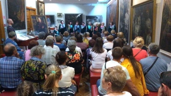 Заместитель генерального директора Н.В. Галченко, заведующая Картинной галереи Т.М. Дашевская встретили новгородских гостей, вручили памятные сувениры ВКИКМЗ в знак дружбы между культурными учреждениями. Кураторам выставок и всем присутствующим в зале была подарена музыкальная программа от керченского вокального ансамбля «Троянда» (руководитель Александр Николаевич Коновалов). Творческий коллектив исполнил произведения советских композиторов, русские народные песни, в том числе «Майский вальс» (сл. М. Ясеня, муз. И. Лученка), «В роще пел соловушка».