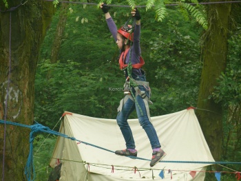 Несмотря на непогоду, в соревнованиях приняли участие более 50 воспитанников разного возраста из 12 туристских объединений "Киммерии". Юные спортсмены вновь показали отличные туристические навыки на пешеходных дистанциях второго класса - вязали на скорость узлы; преодолевали "болото" по жердям и кочкам; переправлялись через условную реку по навесной переправе. Также взбирались на крутой холм, а потом спускались с него, используя крутонаклонную переправу со страховкой.