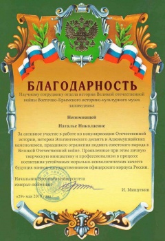 В конференции приняла участие научный сотрудник отдела истории Великой Отечественной войны Восточно-Крымского историко-культурного музея-заповедника Наталья Непомнящая. Её доклад был посвящён Героям Отечества - артиллеристам 490-го истребительно-противотанкового артиллерийского полка, сражавшимся на Эльтигенском плацдарме в ноябре-декабре 1943 года, боевому пути и судьбе начальника штаба 490-го ИПТАП майора Николая Семёновича Суслова. Об этом сообщает пресс-служба заповедника, - передаёт Керчь.ФМ