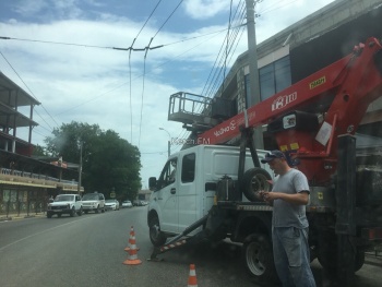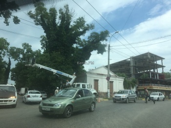В Керчи 13 июня, около 11.20, на перекрёстке улиц Театральная - Свердлова образовалась пробка. Дело в том, что на узкой дороге ведут работы с помощью автокранов, - передаёт Керчь.ФМ