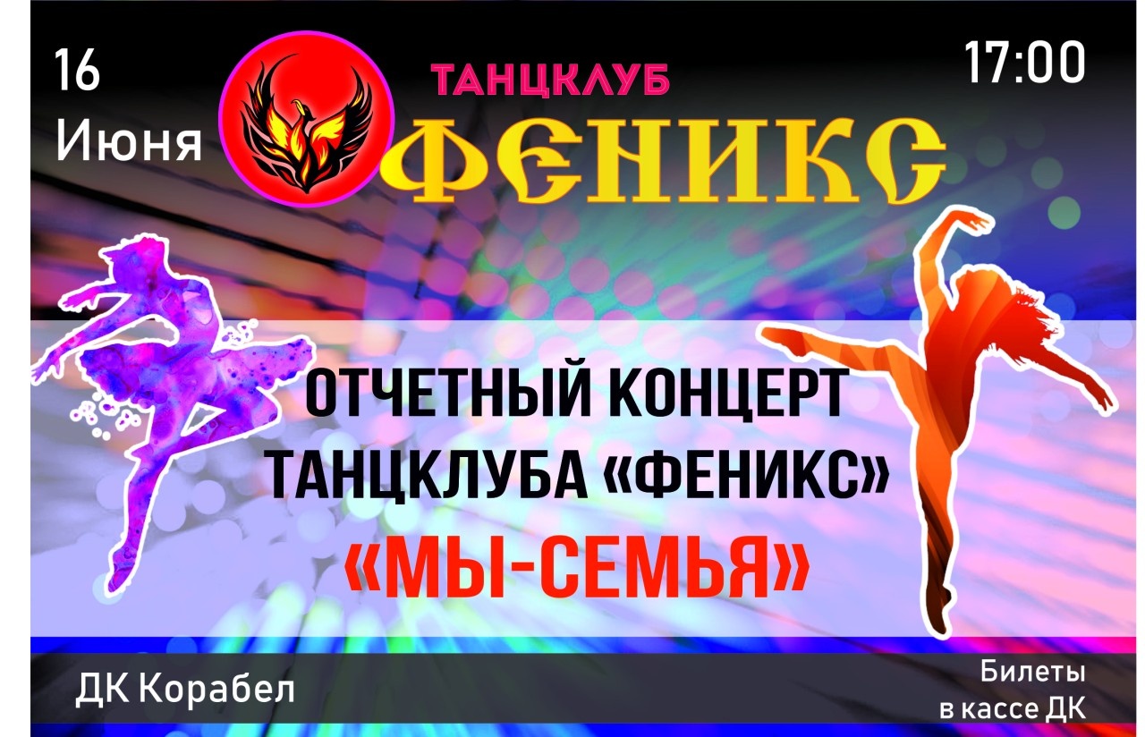 Отчётный концерт танцклуба «Феникс» 16 июня в 17-00 ДК КОРАБЕЛ