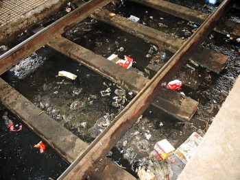 Полоса отвода железной дороги захламлена сухостоем и иными горючими материалами.