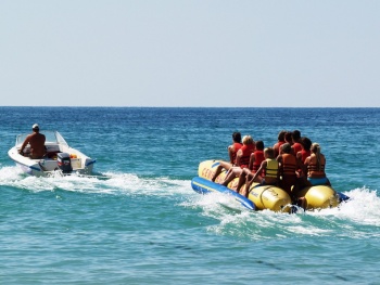 Отмечается, что инцидент произошел в районе пляжа "Горизонт". Спасатели заметили водителя гидроцикла, буксирующий "банан" с туристами, который отцепил своих пассажиров и скрылся в неизвестном направлении. Возвращать на берег шестерых взрослых и восьмерых несовершеннолетних пришлось спасателям.