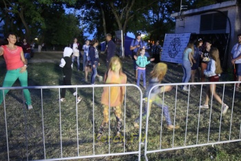 И, если взрослым на «раскачку» потребовалось время и сумерки, то дети этого ждать не стали и сразу начали танцевать. Радости добавили организаторы, когда устроили фестиваль красок.