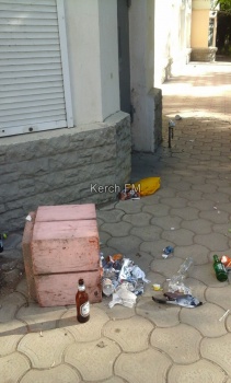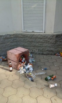 Так, как магазин несколько дней не работает, и уборщика нет, в урне накопилось достаточно мусора, который отдыхающие задушевно пинали ногами по тому, что осталось от тротуара прилегающего к магазину.