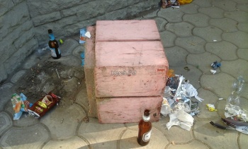 Со слов очевидцев, проживающих в доме, где расположен магазин " ПРОДУКТЫ, " несколько нетрезвых пляжников, ругаясь и громко выражая восторг от своих действий, перевернула большую бетонную урну, установленную хозяевами магазина у входа для естественных целей культурного обслуживания населения.