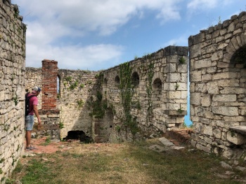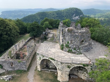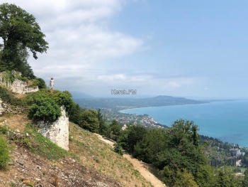 Дальше решили посетить Анакопийскую крепость, которая также расположена в Новом Афоне. Дойти пешком можно, но подъем достаточно сложный. Таксисты предлагают отвезти за 300 рублей, на своем автомобиле проехать тоже можно. Вход в крепость - 200 рублей с человека, там есть касса и дают билет. Но до крепости придется тоже идти в горку, хоть дорога, ровная, нужно потратить немного времени и попотеть, чтобы подняться на вершину. С высоты открывается шикарный вид на монастырь и побережье. Также там есть колодец, из которого можно набрать воды. Воду в колодце считают святой.