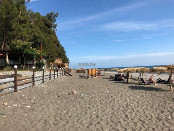 Дошли до набережной. Сейчас здесь идет реконструкция - рабочие укладывают плитку, заливают бетоном парапеты. Людей на пляже много. Вдоль набережной куча кафешек, во многих из них поют музыканты, но по интерьеру, они также немного отстают по времени, сравнивая с другими курортными городами в России.