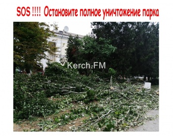 В редакцию сайта Керчь.ФМ целый день приходят письма возмущенных жителей города, которым не нравится, что в сквере, около кинотеатра «Украина», спиливают деревья.