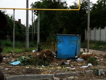 По факту видно, что мусорные контейнеры очищены, а рядом склады старой мебели, мусорных пакетов со скошенной травой, ветками, старые матрасы и ветошь, а как из местной экзотики - шкура с головой коровы, кости после разделки мяса животных перед продажей. Ежедневно, по словам керчан, живущих рядом, приезжает машина и частично забирает мусор, притом вручную.