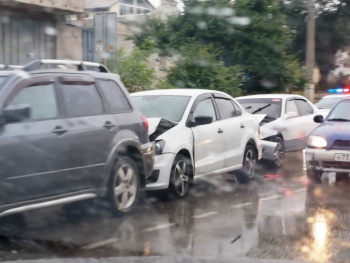 В аварию попали автомобили "Митсубиси", "Фольцваген" и "Тойота". На место прибыли сотрудники полиции.