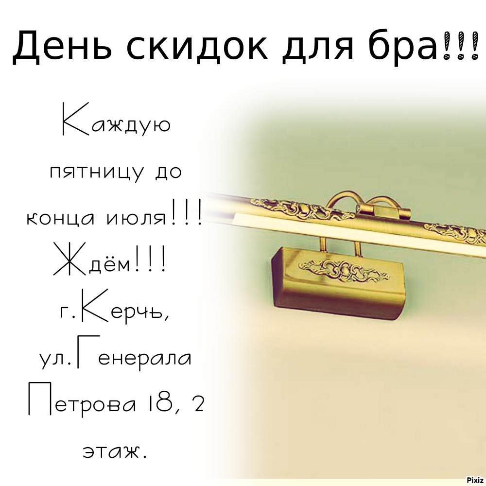 По пятницам в магазине «Электрострой» скидки на все бра - 20%.