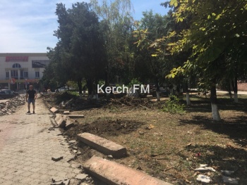 В Керчи продолжаются работы в Сквере около кинотеатра «Украина». Рабочие демонтируют плитку и бордюры, - передает Керчь.ФМ.