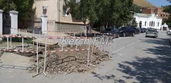 В Керчи на ул. Айвазовского разрыли проезжую часть, -передает Керчь.ФМ. В этот раз место оградили не сигнальной лентой, а металлическими заграждениями, повесили знак объезд.