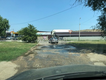 В Керчи 27 июля, возле дома по ул. Ворошилова, 23а течет чистая вода. Болото образовалось на траве у люка, также вода стекает по проезжей части, -  передает Керчь.ФМ.