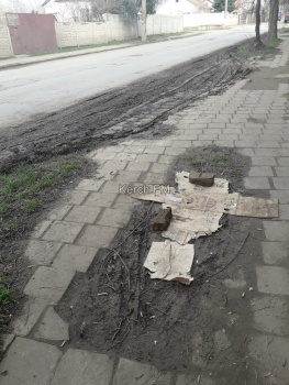 «Я не могу уснуть из-за грохота «камазов», — делилась со мной Валентина Леонидовна, живущая вблизи школы №13, — грузовому транспорту нельзя проходить ближе двадцати пяти метров от жилых домов, а тут и пяти не наберётся. Но мы это до сих пор терпим. Что терпеть уже невозможно — это пыль и грязь. Почему мою улицу превратили в грузовую трассу стратегического значения, и не могут обеспечить на ней чистоту?! Даже через высокий забор в мой двор залетает пыль и песок, а выйти за ворота, не закашлявшись, и вовсе невозможно. Тротуар напоминает, скорее, грунтовую дорогу: из-за слоя наметённой земли не видно плитки, а в некоторых местах её действительно нет». (А исчезает плитка безвозвратно после работ все того же Водоканала, работой которого в Керчи недоволен никто.)