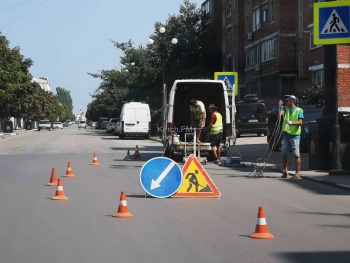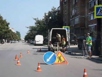 На Карла Маркса на отремонтированном участке дороги в воскресенье 28 июля рабочи наносили разметку, - передает Керчь.ФМ.