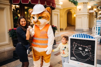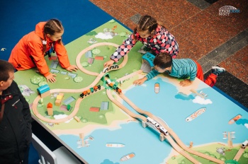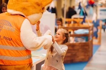 В центральной части выставки расположена детская игровая площадка с импровизированным кораблем. Капитан - талисман стройки века кот Мостик - приглашает совершить путешествие к судоходным аркам. На борту судна можно нарисовать портрет кота мелом или собрать картину из мягких кубов, а также составить пазл с изображением самого красивого участка моста - фарватерного.