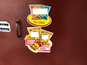 В Керчи обклеили двери многоэтажки рекламой семечек