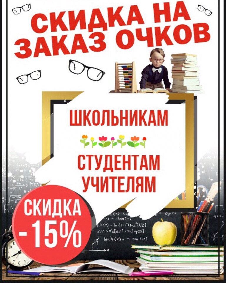 Скидка -15% на очки детям, подросткам, студентам и преподавателям с 15 до 31 августа!