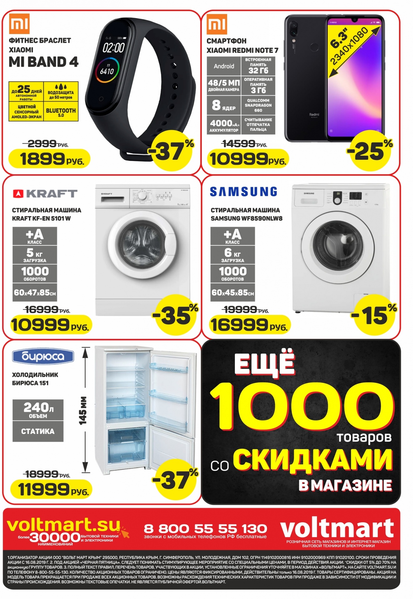1.ОРГАНИЗАТОР АКЦИИ ООО "ВОЛЬТ МАРТ КРЫМ" 295000, РЕСПУБЛИКА КРЫМ, Г. СИМФЕРОПОЛЬ, УЛ. МОЛОДЕЖНАЯ, ДОМ 102, ОГРН 1149102000816 ИНН 9102000969 КПП 91020100. СРОКИ ПРОВЕДЕНИЯ АКЦИИ 17.08.2019 - 18.08.2019 Г. 2. ПОД АКЦИЕЙ «Черная Пятница» СЛЕДУЕТ ПОНИМАТЬ стимулирующее мероприятие со специальными ценами, в период действия акции. *скидки от 5% до 70%. С ИНФОРМАЦИЕЙ ОБ ОРГАНИЗАТОРЕ АКЦИИ, О ПРАВИЛАХ ЕЁ ПРОВЕДЕНИЯ, КОЛИЧЕСТВЕ ПРИЗОВ ИЛИ ВЫИГРЫШЕЙ ПО РЕЗУЛЬТАТАМ АКЦИИ, СРОКАХ, МЕСТЕ И ПОРЯДКЕ ИХ ПОЛУЧЕНИЯ МОЖНО ОЗНАКОМИТЬСЯ ПО ТЕЛ.8 800 55 55 130 ИЛИ НА САЙТЕ VOLTMART.SU. НЕ ЯВЛЯЕТСЯ ПУБЛИЧНОЙ ОФЕРТОЙ. КОЛИЧЕСТВО ТОВАРА ОГРАНИЧЕНО.ВОЛЬТМАРТ.