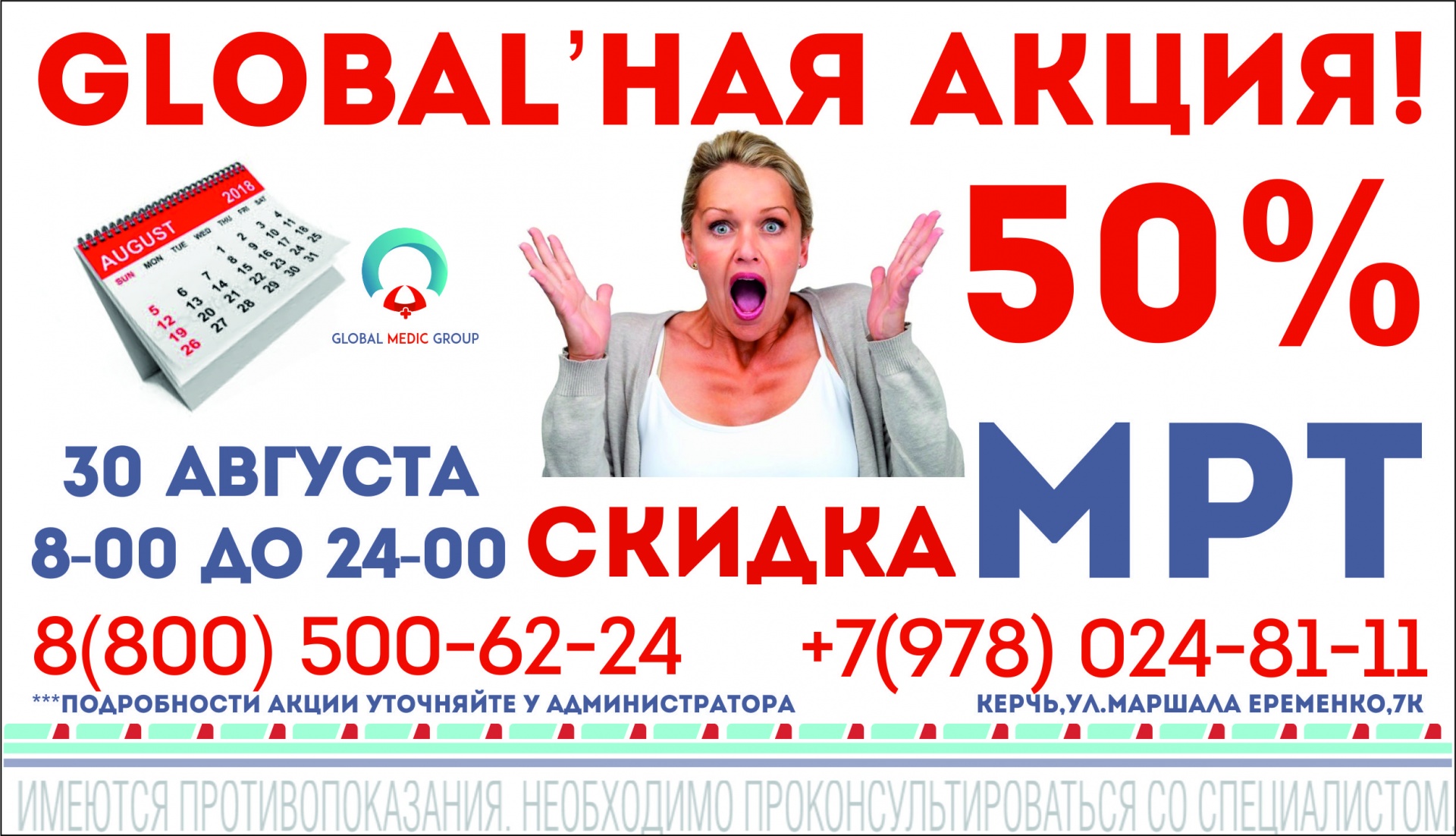 В нашем диагностическом центре снова проводится АКЦИЯ с глобальной скидкой 50% на МРТ диагностику любой области!