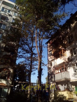 После обращения жителей домов по Всесоюзной, 5, Генерала Петрова, 22 коммунальные службы провели обрезку части кроны сорокалетнего тополя. Но местные жители опасаются, что такая обрезка превратило 30-метровое дерево в опасную свечку, которая при сильных порывах ветра может упасть на газовую трубу. Об этом редакции Керчь.ФМ рассказали старшие по домам.