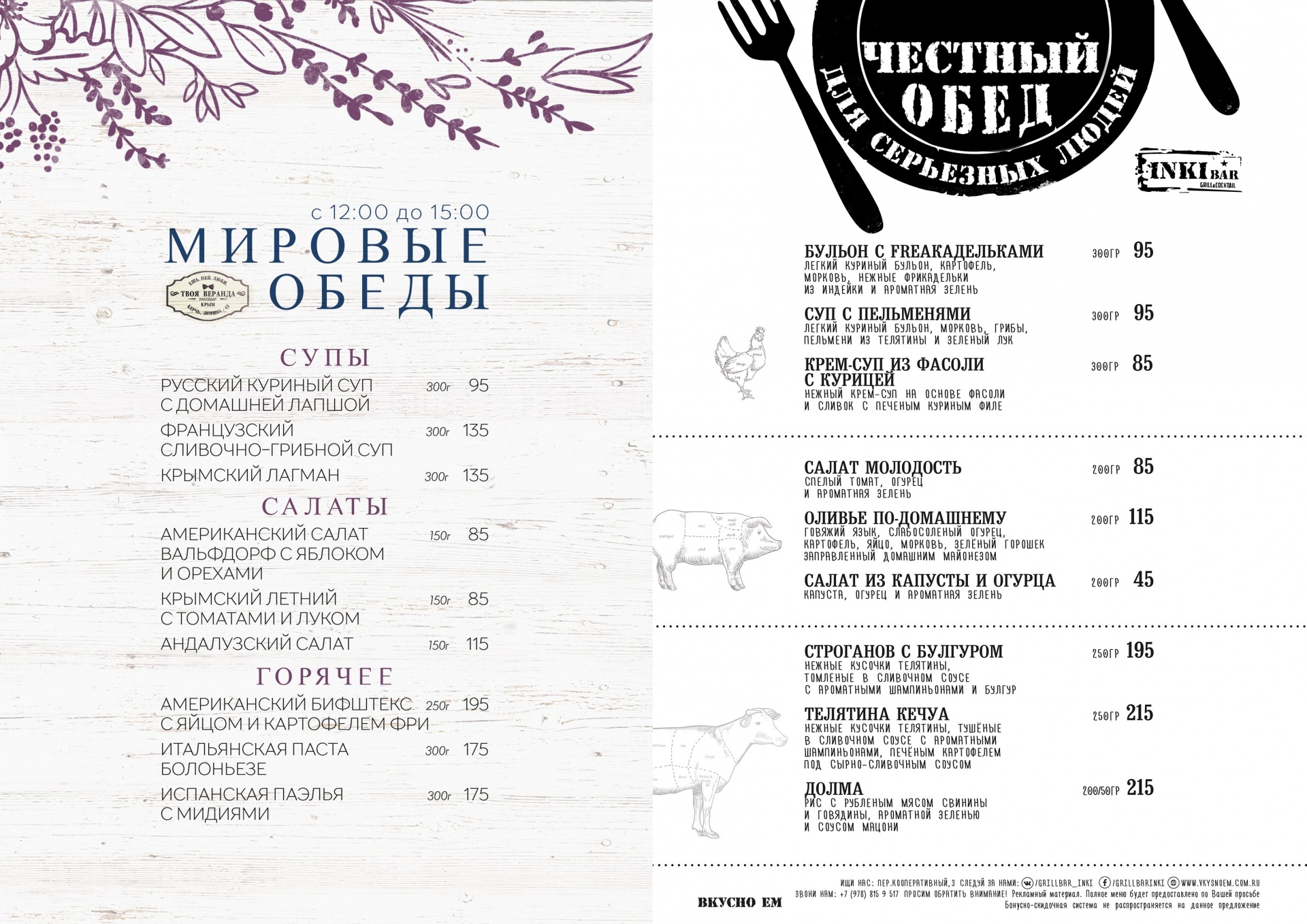 Супы: Русский куриный суп с домашней лапшой, Крымский лагман, Французский сливочно-грибной суп.