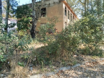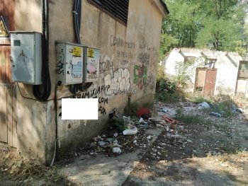 В редакцию Керчь.ФМ обратились жители домов в районе Кирова, 79. Рядом с домом находится заброшенное здание, которое исписано рекламой наркотиков. Также здесь и заросли, и свалка мусора.