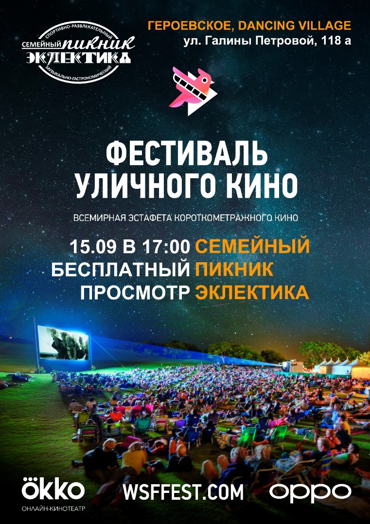 15 сентября в рамках семейного пикника «Экелктика» состоится единственный в этом году конкурсный показ Всемирного Фестиваля уличного кино (https://vk.com/wsffest).