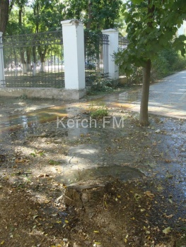 «С утра во дворе, на углу дома номер 1 из-под трухлявого пня, бьет мощный поток питьевой воды. Подтапливая огромные кучи сухих веток, что оставила служба города, после спила старых деревьев еще полтора месяца назад,  вода создала огромные озера....  Далее бурные потоки воды устремляются в Молодежный парк, снося под собой все живое и мертвое. Такое впечатление, что наши дома гнобят специально, чтобы мы меньше «гавкали», - пишут керчане.