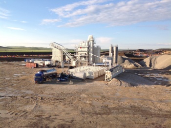 При изготовлении смеси происходит перемешивание инертных материалов (щебня 5-20 и отсева 0-5) с битумом и минеральными добавками в специальной установке, после чего горячий асфальтобетон отгружается заказчику. В производстве используется поставляемый с материка битум и крымские инертные материалы.