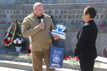 На память о Керчи гостям была передана горсть земли нашего города-героя.