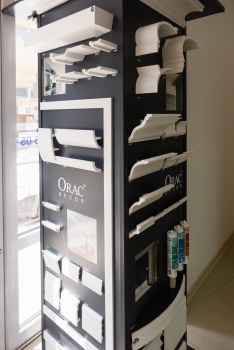 Также в магазине представлена выставка ламината Pergo, Haro, паркета PolarWood, пробковые напольные покрытия, виниловое покрытие Pergo