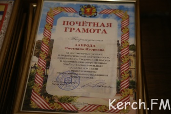 После поздравления администрация города торжественно вручила грамоты лучшим учителям города. Керченские школьники, танцевальные коллективы и молодые таланты порадовали всех присутствующих своими выступлениями.