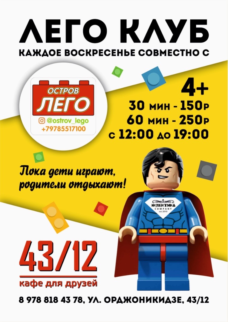По воскресеньям работает лего-игровая с аниматором от клуба «Остров Лего».