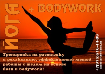 • «Йога + Bodywork» - глубокая комплексная проработка и оздоровление всего тела, снятие зажимов и обретение гибкости (вечерняя группа).