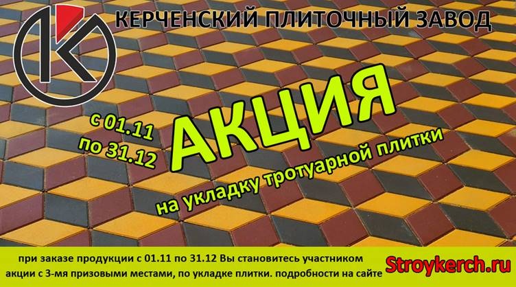 Современный завод тротуарной плитки «Керченский Плиточный Завод» предлагает широкий ассортимент продукции для мощения тротуаров, благоустройства территорий и ландшафтного дизайна в целом. У нас можно купить тротуарную плитку по оптимальным ценам. Кроме этого, мы предлагаем комплекс сопутствующих услуг: доставка манипуляторами, хранение, подготовка территории, укладка тротуарной плитки.