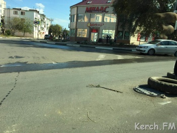 В Керчи на Самойленко просел канализационный колодец