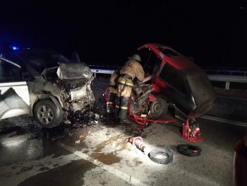 По предварительной информации, 25-летний водитель ВАЗ-21083, двигаясь со стороны Феодосии в сторону Керчи, выехал на встречную полосу и столкнулся с микроавтобусом Mercedez-Benz Vito.