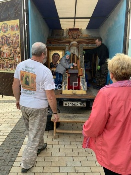 Организаторы приехали на нескольких машинах. Всем желающим предлагали подержать макет Иисуса за ноги.