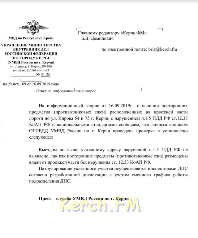 Редакция направила официальный информзапрос, однако сотрудники полиции не увидели ни разу там противотанковых ежей, как, собственно, и иных предметов на дороге, препятствующих движению транспорта. Вот так вот, ежи были, их снимали на видео, убирали, а они появлялись снова. При этом, согласно ответу на информзапрос, там постоянно патрулировали дорогу сотрудники полиции, но ежей там не наблюдали.