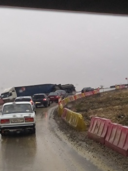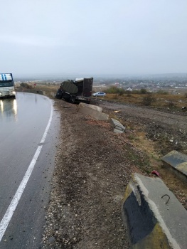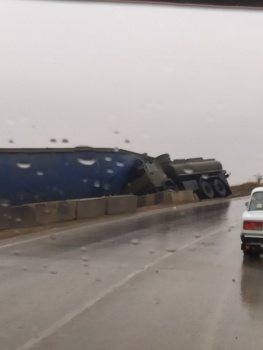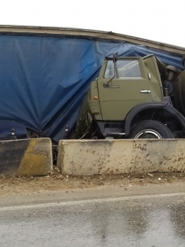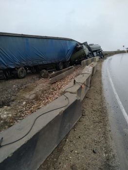 На трассе в Крыму с дороги съехала фура, в нее врезался бензовоз