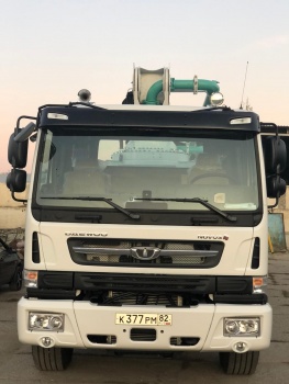 Организация предлагает в почасовую аренду автобетононасос на базе Daewoo Novus с рекордной для Керчи длиной стрелы 43 метра!