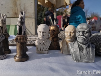 От народных умельцев были традиционные и всегда пользующиеся успехом куклы, картины, заколки, броши. Хитом был серогипсовый Путин в компании с вождем мирового пролетариата.