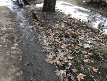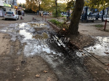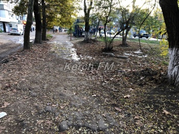 На «Институте» в Керчи чистая вода залила пешеходную дорожку