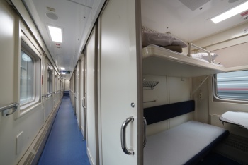 Двухэтажные СВ будут курсировать в составе поезда Москва - Симферополь. Всего в таких вагонах 32 места, они оборудованы душем и биотуалетом. В каждом купе здесь есть два нижних дивана, у каждого индивидуальное освещение. Также в СВ есть телевизор и кондиционер. В стоимость билета входит комплект постельного белья, полотенце и горячее питание.